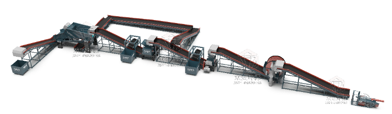 眾安環(huán)保輪胎破碎+造粒生產線主要是對廢舊輪胎進行撕碎、鋼絲分離、粉碎、纖維分離等處置,使廢舊輪胎實現再生。廢舊輪胎首先經過液壓抽絲機將胎側鋼絲抽離,經輸送設備送入輪胎撕碎機進行破碎,可以把輪胎破碎成5公分左右的小塊,然后經過鋼絲分離機將橡膠塊中的細鋼絲分離,再經振動輸送設備進行振動篩分,纖維分離機和磁選機將纖維和鋼絲從輪胎膠粉里分離出來,篩下物即為成品橡膠顆粒/膠粉。